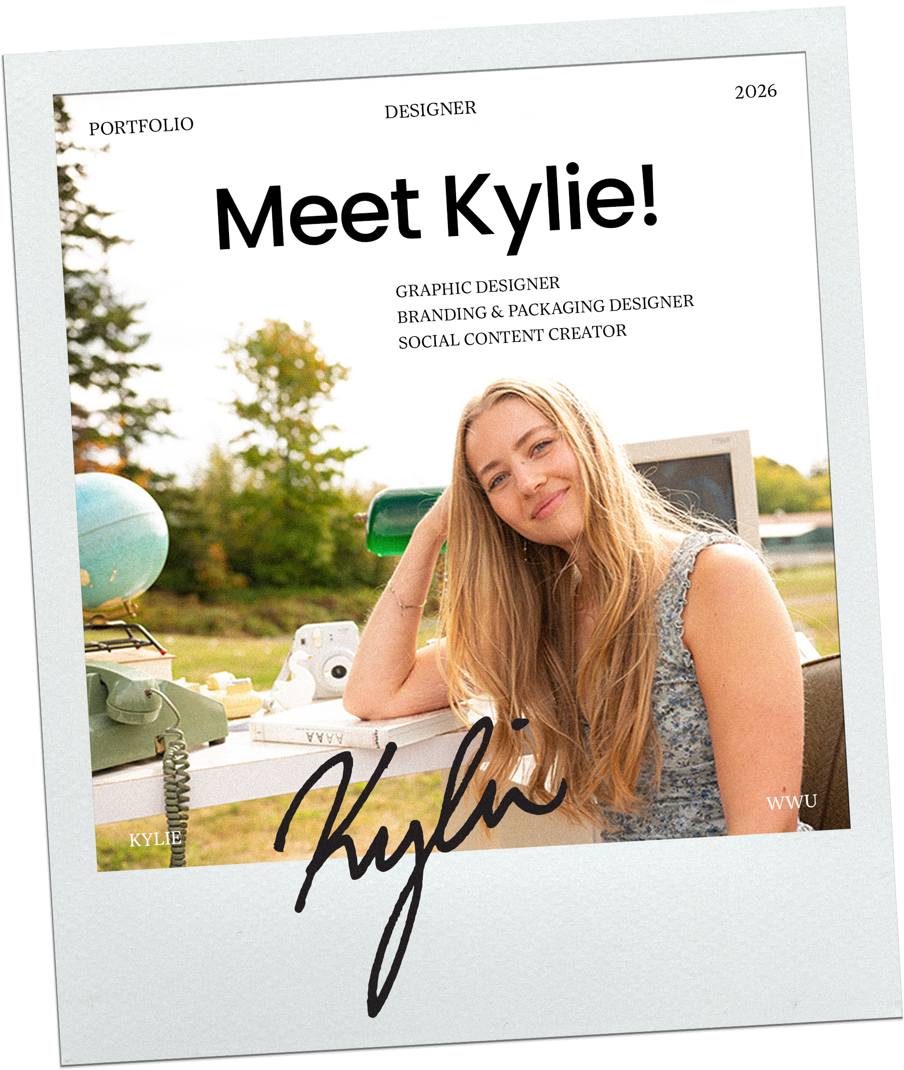 Welcome to my website! I’m currently a Design BFA student attending Western Washington University in Bellingham, WA. I love exploring all things design but am particularly fond of packaging, branding, and type design. Recently, I’ve found a passion for social content creation and experimenting with my photography skills.